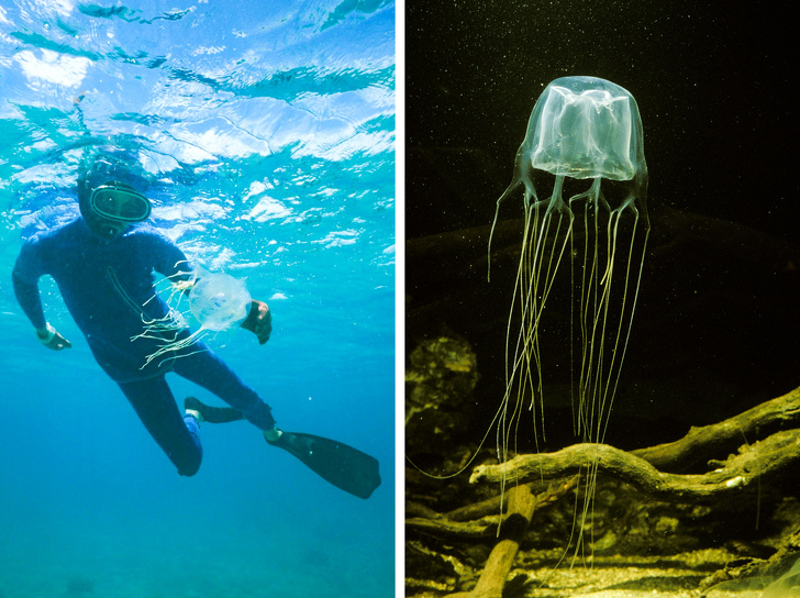 Медуза, названа морський осою, або медузою-коробочкою, належала до виду кубомедуз — її тіло не круглої, а квадратної форми, і з кожного кута цієї медузи звисають отруйні щупальця. Чому ж її так довго ніхто не міг побачити? Морська оса виявилася абсолютно прозорою, так що розгледіти її можна було лише під ультрафіолетовою лампою, а у воді неозброєним оком її помітити неможливо.