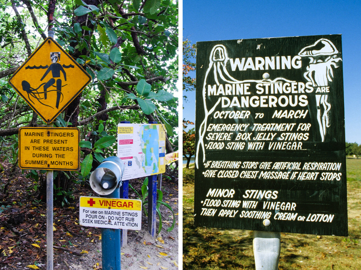 Купатися на північному сході Австралії з листопада по квітень з-за нашестя медуз не рекомендується, але деякі люди все-таки піддають себе небезпеці. Пляжі Квінсленда обладнані спеціальною захисною сіткою, виставлені попереджувальні знаки, а також розвішані чіткі інструкції, які необхідно виконати в разі укусу. Небажано плавати поодинці, необхідно уважно дивитися по сторонах, купатися тільки в захисних костюмах і спеціальних тапочках. Якщо ж медуза все-таки вжалила, то необхідно промити ушкоджене місце морською водою або оцтом (флакони з оцтом є на кожному місцевому пляжі, в барах, готелях і дайвінг-клуби), а потім звернутися за допомогою.