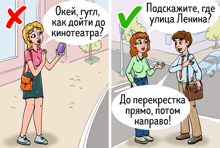 Самостійна побудова маршруту тримає нас у тонусі і навіть допомагає зберегти ясний розум у літньому віці. Використання навігатора кожен день позбавляє нас цієї можливості. Вчені з'ясували, що люди, які орієнтуються в просторі самостійно, більш активні та кмітливі, ніж ті, хто звик покладатися на GPS.