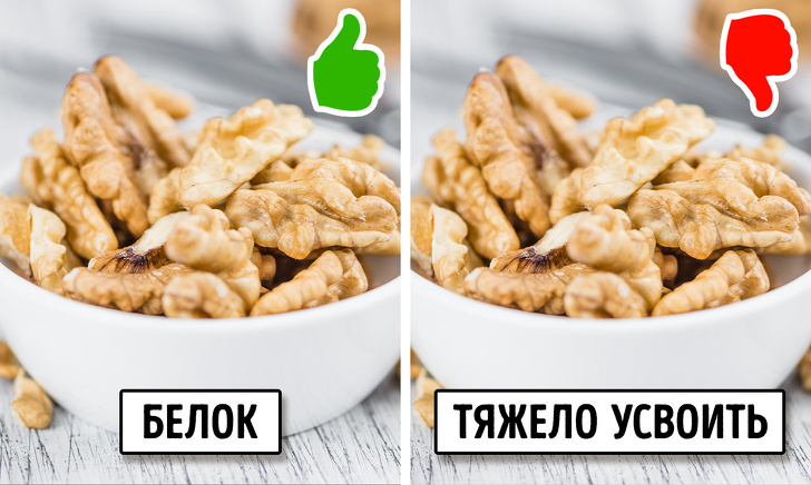 Горіхи є відмінним джерелом корисних жирів і калорій, але вживання їх в якості вечірнього перекусу — не кращий варіант. В цілому це корисно для здоров'я, але якщо ви з'їли велику порцію, то перетравлення може зайняти багато часу, а заснути в такому стані буде складно.