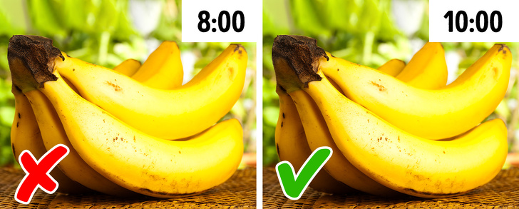 Хоча банани можуть здатися гарним варіантом для початку дня, вжиті натщесерце, вони в дійсності можуть знизити рівень вашої енергії. Спочатку ви, мабуть, відчуєте прилив сил завдяки високому вмісту цукру, але через пару годин, швидше за все, знову відчуєте втому і голод. Вживання в їжу бананів також може представляти загрозу для людей, які страждають синдромом роздратованого кишечника, який викликає діарею.