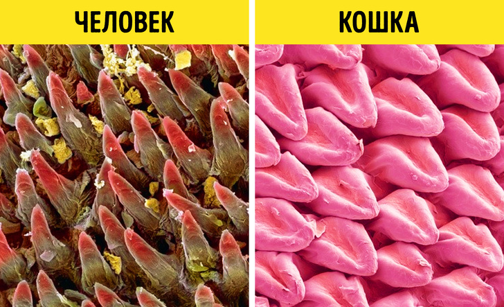 23. Порівняння мови людини і кішки. На мові людини є 5 типів сосочків для розпізнавання смаку, а у кішки тільки 2