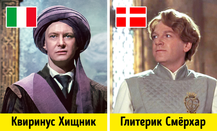 Квиринус Квирелл, чиє прізвище в англійській мові співзвучна зі словами «білка» і «тремтіти», у італійців отримав прізвище Хижак (Raptor). Теж загадково.