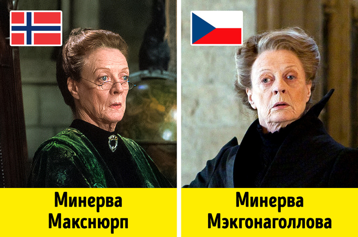 Чехи теж переробили прізвище професора на свій манер: як і всім жіночим прізвищем, додали закінчення-ова і змінили приставку. І стала вона Мінервою Мэкгонаголловой.