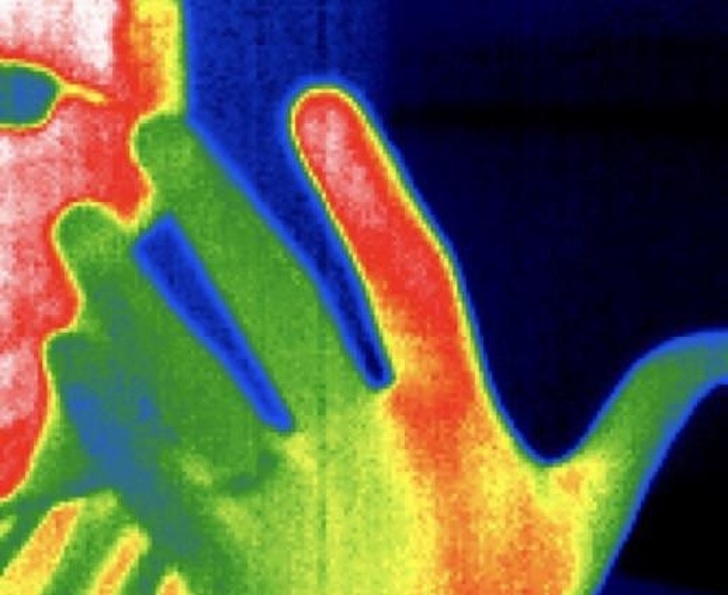 На фотографії вище у людини порізаний палець: у місці, де тіло бореться із збудником, температура зросла. А обличчя виглядає червоним, тому що там розташовується безліч активних м'язів, в яких весь час циркулює кров.