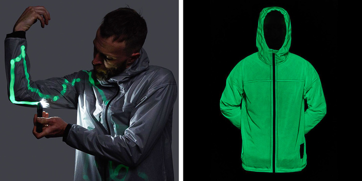 Компанія Vollebak робить одяг тільки для чоловіків. Один з найпопулярніших товарів цієї марки — куртка, яка заряджається від будь-якого джерела світла. Флуоресцентна поверхню вбирає в себе світло, а вночі світиться в темряві. Ця суперспособность куртки може стати в нагоді тим, хто займається бігом в темний час доби.