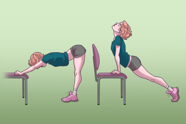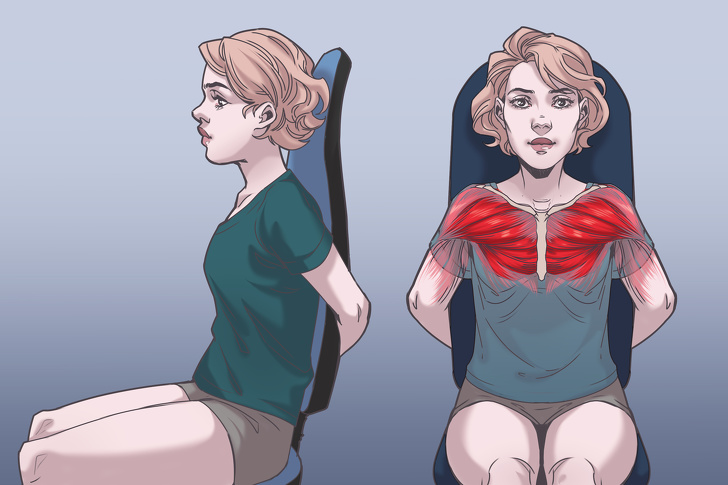 Вправа зі спинкою стільця розтягує грудні м'язи.