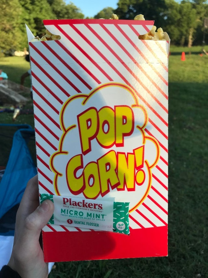 Цей попкорн піклується про ваших зубах, адже в упаковку входить м'ятна нитка