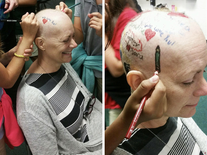 15. "Моєї дочки вчителька з малювання проходить курс хіміотерапії. Це її перший урок у новому навчальному році. Я так вдячна, що ця сильна жінка вчить їх чогось більшого, ніж просто малювання"