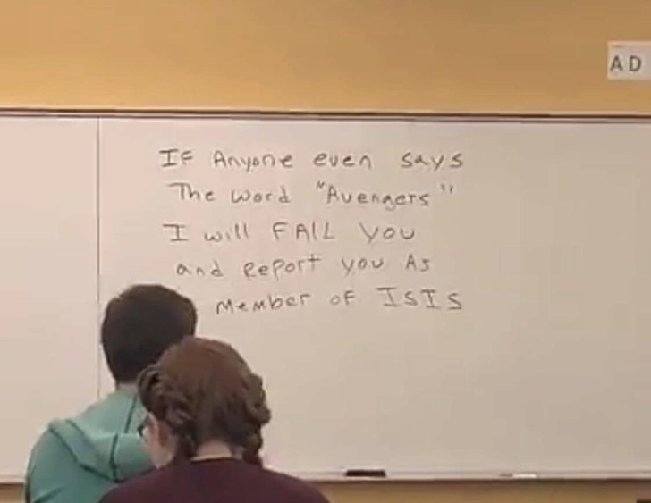 «Якщо хтось вимовить слово „месники“, я срежу вас з іспиту, а потім здам вас владі як учасників ИГИЛ».