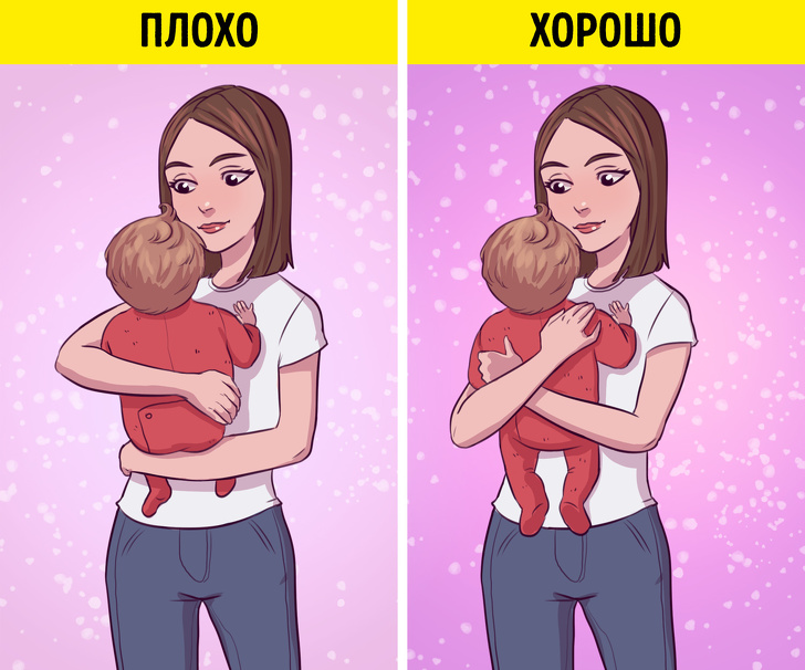 - Не треба садити дитину на руку попою, поки він сам не сідає, до 6 місяців точно, а частіше до 8 місяців.