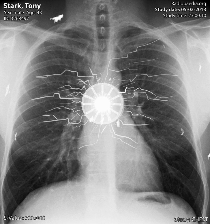 Так виглядає мініатюрний ядерний реактор Тоні Старка на рентгенівському знімку.