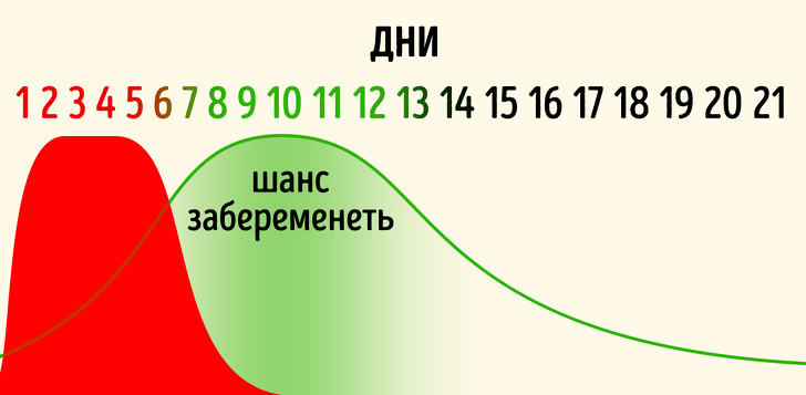 Один з найпоширеніших міфів про критичні дні. Фертильність у цей період дійсно знаходиться на мінімальній позначці, її пік настає за 12-16 днів до наступного циклу. Не варто забувати, що у деяких жінок цикл триває 28 днів, а 21 або може бути нерегулярним.