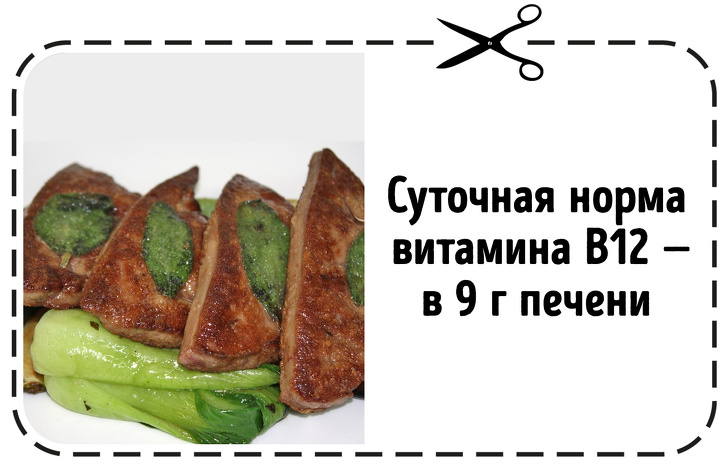 Печінка — один з найбільш живильних продуктів у світі. У печінці міститься безліч різних вітамінів, кількість яких на 100 м у багато разів перевищує денну норму. Так, наприклад, необхідна людині добова норма вітаміну B12, бере участь у кровотворенні, міститься всього в 9 г яловичої печінки.
