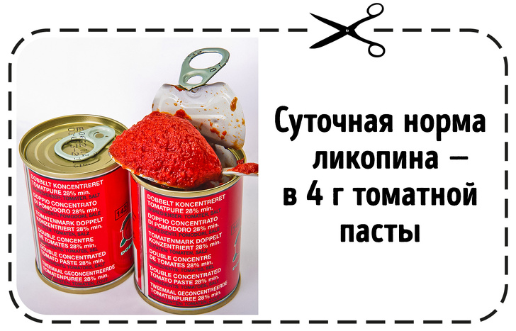 Дослідження показали, що у людей, які отримують недостатню кількість лікопіну, підвищується ризик розвитку серцево-судинних захворювань. Причому залежність тут зворотна: чим менше лікопіну в організмі, тим більше шанс захворіти. Велика кількість лікопіну, в 30 разів більше, ніж у помідорах міститься в томатній пасті.