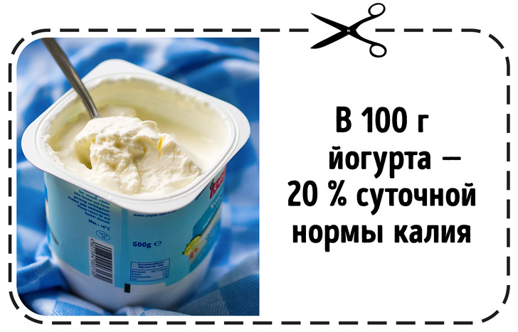 Дослідження, яке тривало більше 30 років, проведене в університеті американського Бостона, показало, що у жінок, які вживають дві порції йогурту в день, ризик розвитку серцево-судинних захворювань знижується на 30 %, а у чоловіків — на 16 %. Калій, що міститься в цьому молочному продукті, — один з найважливіших елементів, необхідних організму для регуляції ритму серцевих скорочень.