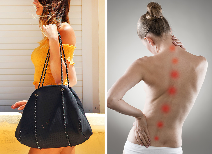 Жіноча сумочка — це скарбниця, в якій можна знайти майже все: від косметички до ноутбука. Це дуже зручно, але небезпечно для здоров'я. Із-за того що ми постійно носимо сумку на одному плечі, збільшується навантаження на плечовий суглоб і міжхребетні диски, що призводить до сколіозу та остеохондрозу. З-за неправильного розподілу ваги перенапружуються і затискаються м'язи, перекриваються кровоносні судини, які живлять мозок і нервові закінчення.