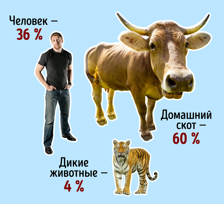 - Тільки 4 % всіх живих істот на планеті становлять дикі звірі.