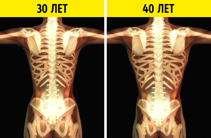 З віком наш скелет стає більше, в середньому на 10 %, і підвищується його крихкість. Кістки тазу, наприклад, активно ростуть до 25-30 років, коли організм готується до народження дитини. Після 40 років стегна стають менше, і цей процес продовжується до самої старості.