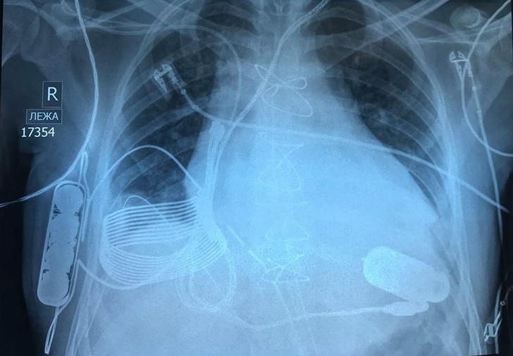 13. Рентгенівський знімок грудної клітки, в яку впровадили бионическое серце з можливістю бездротової зарядки