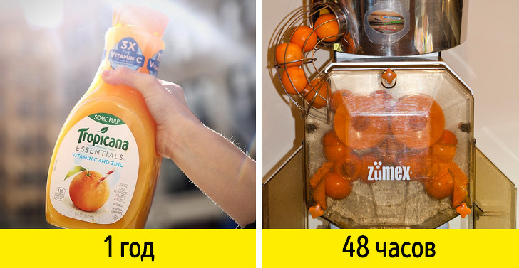 Якщо на упаковці з апельсиновим соком написано, що він «натуральний», то це міф. Щоб напій міг зберігатися цілий рік, з нього виробники спочатку прибирають весь кисень, із-за чого пропадає насичений апельсиновий смак. Щоб його відтворити, у сік додають хімічні смакові добавки та багато, дуже багато цукру, приблизно така ж кількість, як в популярні газованої води. Наприклад, для однієї відомої марки апельсинового напою хімічні добавки розробляли ті ж самі виробники, які займаються виготовленням компонентів для парфумів Dior і Calvin Klein.