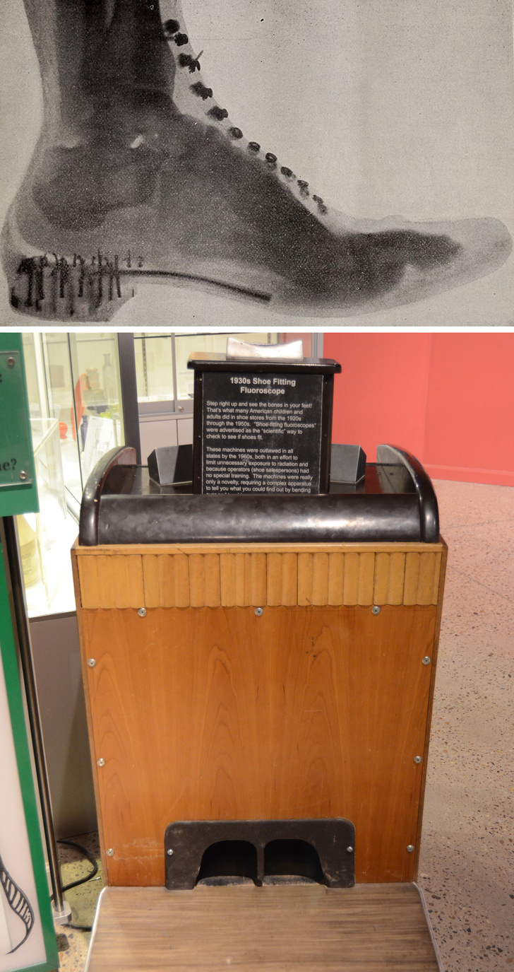 Здається, немає нічого складного в примірці взуття. Але на початку XX століття, судячи з усього, так не вважали. Тоді був запатентований флюороскоп для взуттєвих магазинів. Апарат дозволяв зробити рентгенівський знімок ніг і вже по ньому підбирати взуття. Але через ударних доз радіації, які завдавали невиправданий шкоди здоров'ю, всі пристрої були відкликані і знищені.