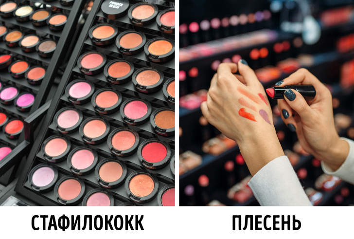 Кожна дівчина хоч раз підбирала собі помаду або тіні за допомогою тестерів. Виявляється, це зовсім не нешкідливе заняття. Так, у відомих магазинах косметики був проведений аналіз, який дав невтішні результати: безкоштовні зразки кишать спорами цвілі (28 %) і бактеріями стафілокока (48 %).