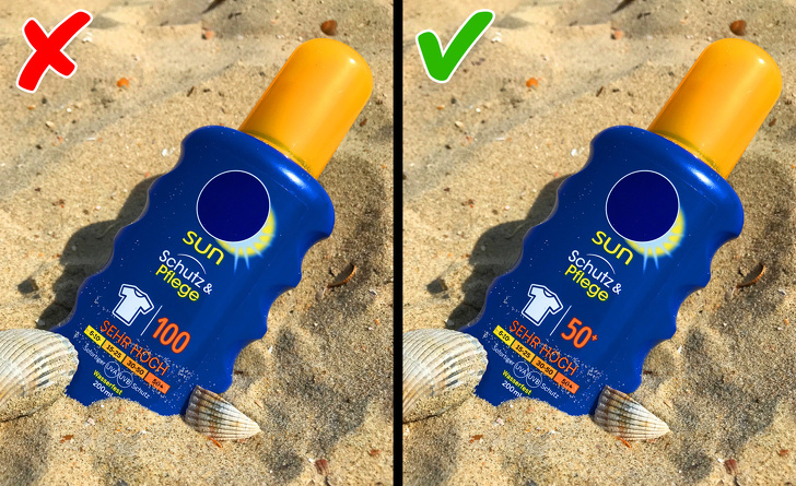 На перший погляд здається, що засіб c SPF 100 захищає в 3 рази краще, ніж засіб з SPF 30. Насправді ж перше пропускає 1 відсоток УФВ-променів, друге — 3 відсотки. Крім того, засіб з більш високим SPF дає помилкове відчуття повної захисту, з-за чого ви можете провести на сонці більше необхідного. Оптимальним вибором є засоби з SPF від 15 до 50.