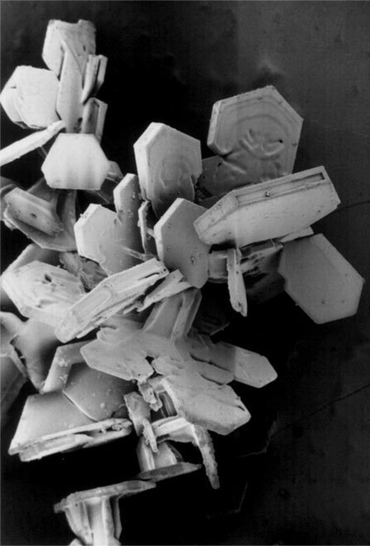Схоже на відколовся шматок скелі, але насправді це сніжинка під електронним мікроскопом