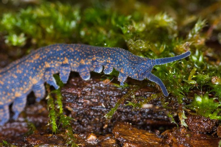 Онихофора схожа чи то на равлика без панцира, то на милого черв'ячка. Однак насправді це серйозний хижак: оксамитовий хробак знерухомлює жертву влучним плювком слизом, а потім приступає до обіду. Але якщо онихофора опиниться в сухому і вітряному місці, то швидко загине, оскільки вже дуже цінує вологість. Цим обумовлено і місце проживання онихофоры: вона живе в листовій підстилці тропічних лісів.