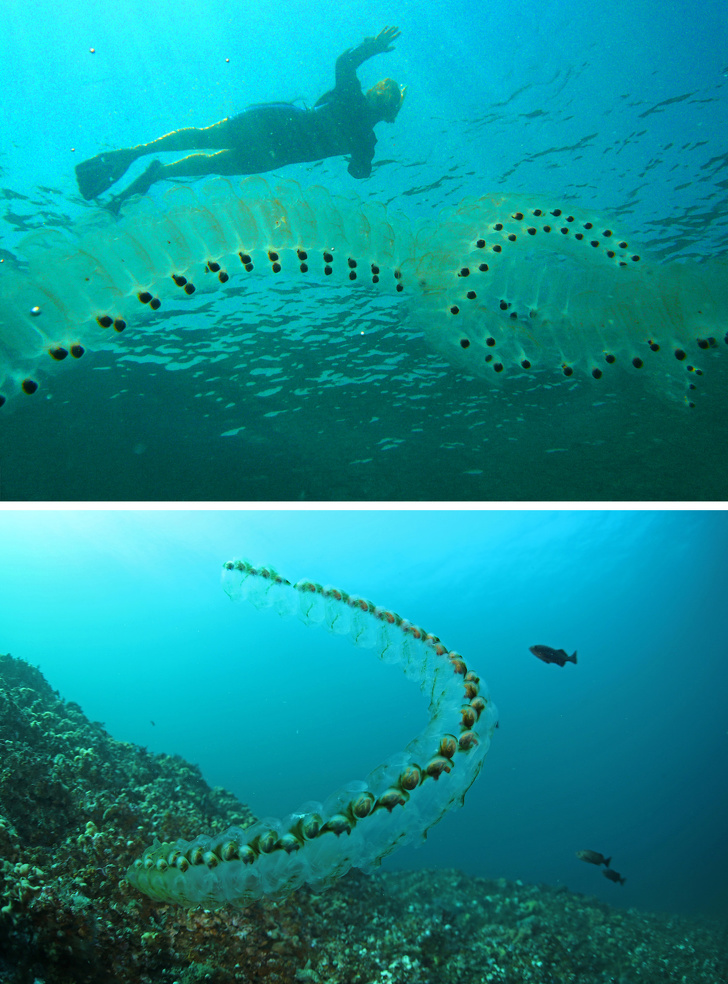 Сальпи — вільно плаваючі морські істоти. Вони часто поєднуються в ланцюжки довжиною до декількох метрів. Сальпи допомагають людству в боротьбі з глобальним потеплінням тим, що переробляють парниковий газ. А ще ці дивовижні створення світяться в темряві.