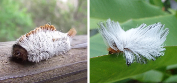 Гусеницю фланелевою молі часто порівнюють з кошеням з-за її довжиною і пухнастої шерсті. Однак тих, хто вирішить погладити її, чекає неприємний сюрприз: ці отруйні гусениці. Дотик до них дуже болісно, а ще викликає блювоту і головний біль. Втім, гусениці часто самі знаходять своїх жертв, адже в літній період вони десятками падають з дерев.