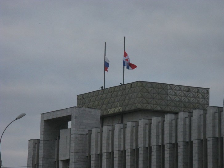 Звичай прапор приспускають під час трауру був помічений в XVII столітті в британських військових моряків, які робили це в пам'ять загиблих товаришів. Спочатку прапор приспускался на відстань, що дорівнює його висоті, ніби звільняючи місце для особливого прапора — невидимого прапора смерті. Здатність зрівнювати переможців і переможених у бою — ось що підкреслює велич і владу смерті.