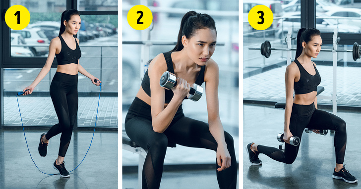 Перші 5 хвилин приділяється кардиоупражнениям. Це можуть бути стрибки зі скакалкою, біг і навіть танці в швидкому темпі. Друга і третя 5-хвилинки приділяється силових тренувань: спочатку для рук і грудних м'язів, а потім для сідничних м'язів і ніг.