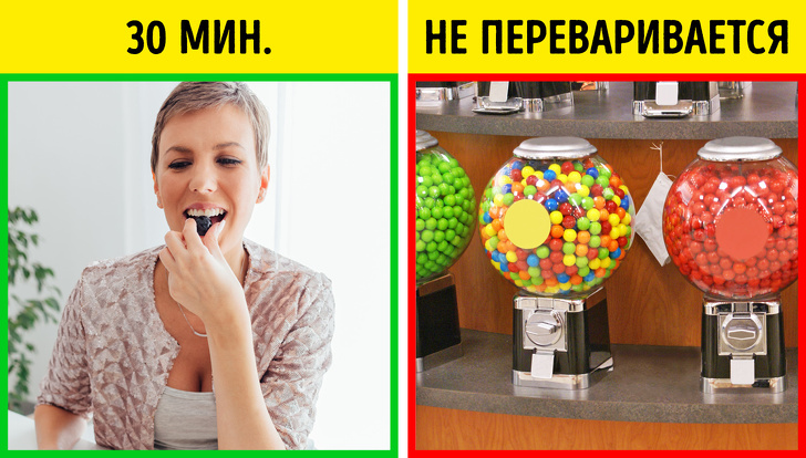 - жуйка, до речі, не перетравлюється, а з організму виходить через 12-36 годин.