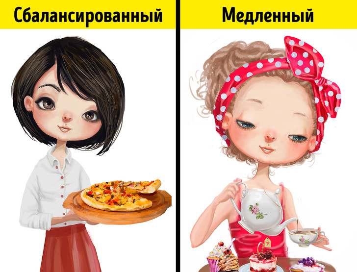 З назви зрозуміло, що людям з цим типом метаболізму необхідно збалансоване харчування. Люблять солодке і солоне, до м'яса і риби обов'язково додадуть гарнір, а до салату — бутерброд з ковбасою.
