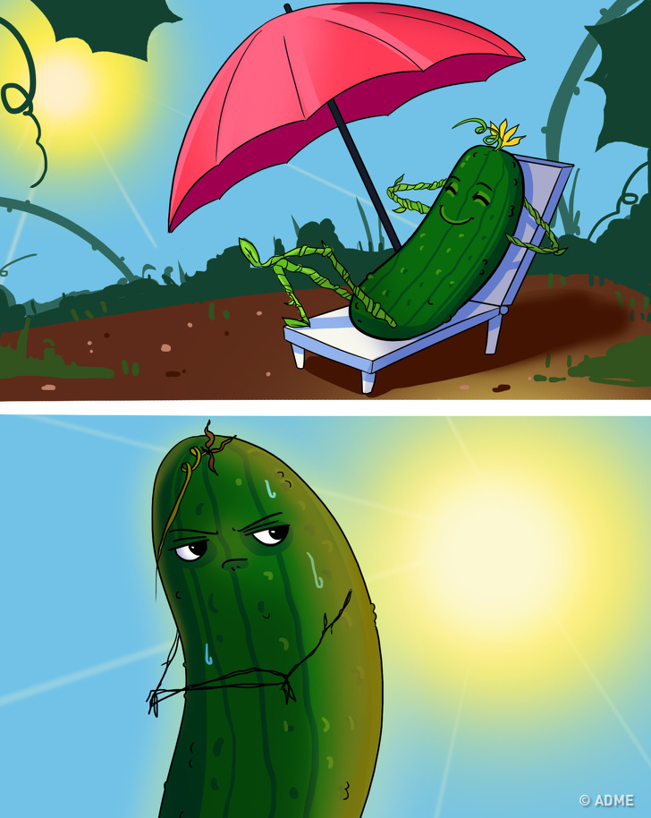 «Предки» сучасного огірки росли в тіні тропічних лісів і були солодкуватими на смак. У північних широтах огірок, опинившись на яскравому сонці, «протестує» і виробляє речовину кукурбитацин, яке робить його гірким. Інакше кажучи, чим більше сонця, тим більше в огірку гіркоти.