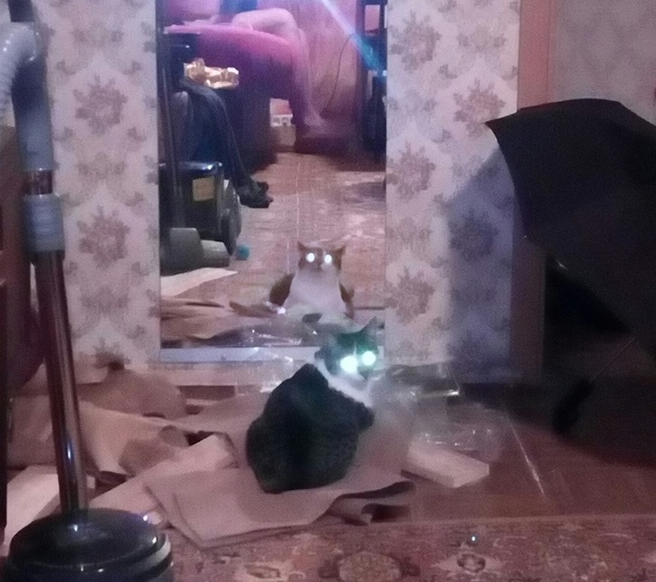 У багатьох тварин, у тому числі і кішок, очі здатні вловлювати і максимально використовувати навіть найслабкіше світлове випромінювання, яке відбивається від задньої частини очних яблук. Зовні це виглядає як диявольське світіння, а насправді всього лише дозволяє тваринам краще бачити в темряві.