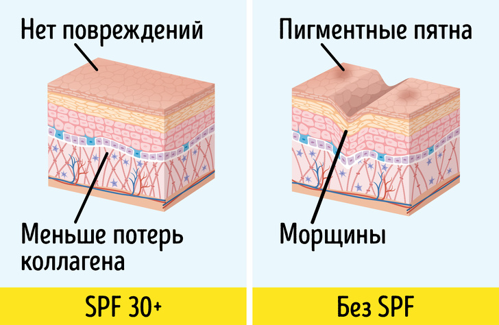 5. Захисний фактор SPF 30+. Дослідження показало, що щоденне застосування крему з SPF вище 30 покращує стан зрілої шкіри. За рік використання крему зморшки учасників дослідження стали менше, загальний тон рівніше, текстура на 40 % краще, пігментація зменшилася на 52 %. Коли вибираєте крем, шукайте значок PA+++, щоб максимально захиститися від UVA - і UVB-променів.