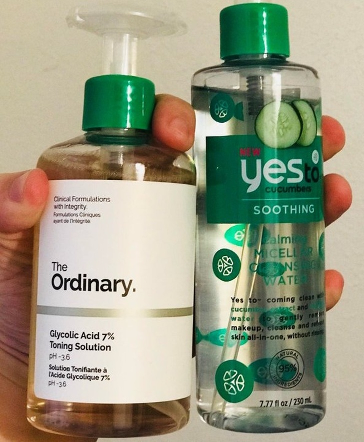 Гліколева кислота є і в складі тоніків, як на фото зліва: