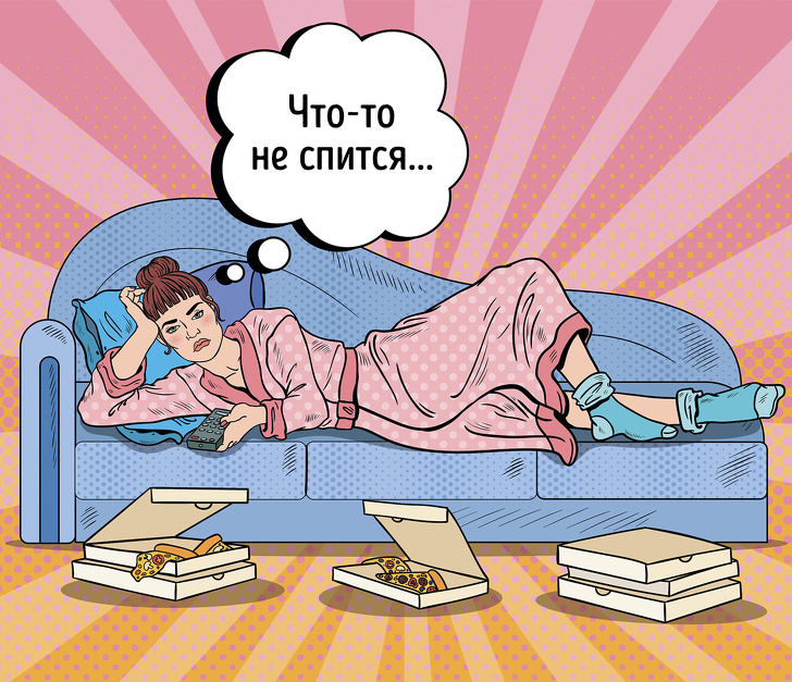 Сон на голодний шлунок буде неспокійним (навіть якщо вам не сняться тістечка). Тому невеликий перекус за 1 годину до сну (близько 150 калорій) — відмінна ідея. Він забезпечить тіло енергією, яка допоможе зануритися в сон, як би парадоксально це не звучало. Підвищення кількості інсуліну в крові сприяє виробленню гормону серотоніну, який в тому числі покращує якість сну. Особливо це відчувається після обіду, правда?