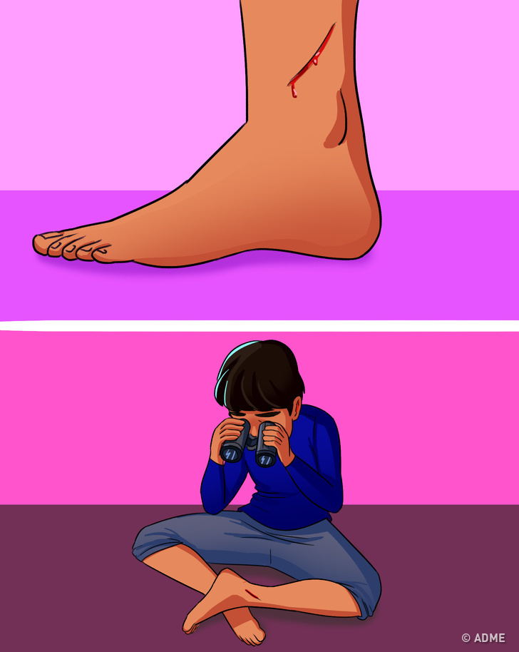 7. Біль зменшиться, якщо подивитися на рану в перевернутий бінокль