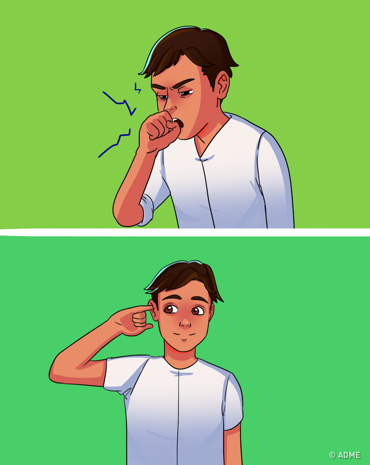 Ще один дієвий спосіб — покласти палець в рот і видихнути повітря. Таким чином ми стимулюємо блукаючий нерв, що зменшить серцебиття і допоможе відчути себе більш розслабленим і спокійним.