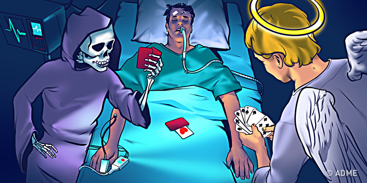 «Снилося всяке, а в останній раз перед пробудженням я катил якусь бабусю на інвалідному візку по темному і сирому коридору. Поруч ішли люди. Раптом бабуся обернулася і сказала, що мені ще з ними рано, махнула рукою — і я прокинувся».