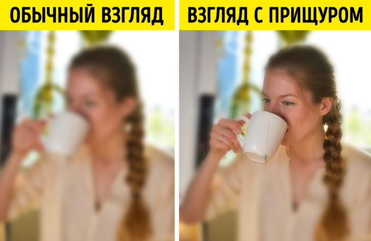 У людини з далекозорістю або короткозорістю трохи деформоване очне яблуко, внаслідок чого фокусування світла збивається і він бачить предмети розпливчастими. Примруження прибирає потоки світла зверху і знизу, падаючі на око під кутом. А промені, що йдуть у центр очі, не потребують правильному світлі, в результаті ми бачимо трохи краще.