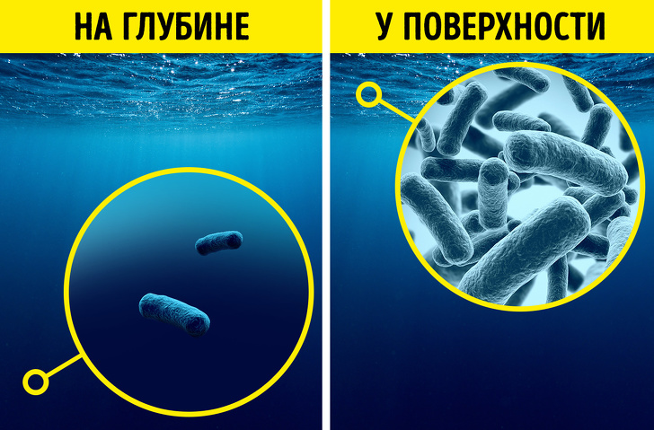 Чиста морська вода, наприклад, взята з великої глибини, відмінно бореться з інфекціями. Однак ближче до поверхні океанів і морів мешкає величезна кількість самих різних бактерій і вірусів. Експерт з інфекційних хвороб професор Барт Каррі підкреслює, що особливо слід побоюватися тропічних вод, місць поруч зі стоками, шахтами, фермами і в цілому промисловими районами.