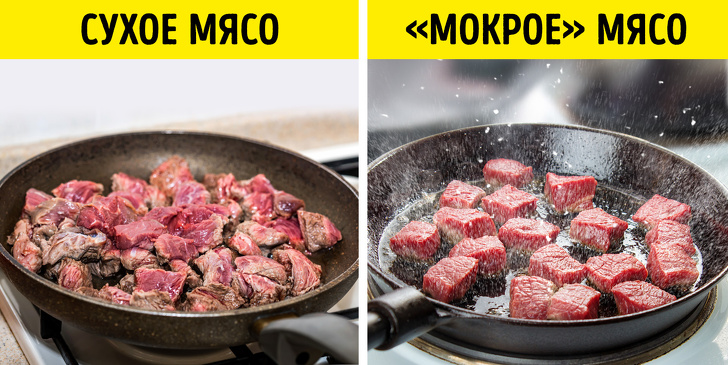 Зауважте, що масло буде бризкати, тільки якщо ви налили його на мокру сковороду або кинули туди не до кінця обсушенное м'ясо або овочі. Температура кипіння, наприклад, оливкової олії в 3 рази вище, ніж у води. Таким чином, вода в ньому буде швидко перетворюватися в пару, якому потрібно набагато більше простору, ніж рідини.