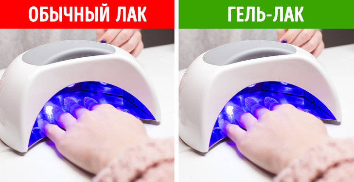 Висихання звичайного лаку ультрафіолет ніяк не прискорить, так як сам процес сушіння полягає тільки в випаровуванні розчинника і полімеризація в нього відбуватися не може в принципі. На відміну від гелів прості лаки не містять особливих компонентів під назвою «фотоинициаторы», поглинають УФ-випромінювання і запускають полімеризацію.