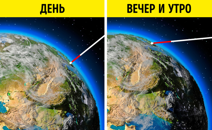 Під час заходу або світанку промені Сонця падають на конкретне місце Землі під великим кутом, майже паралельно їй. Таким чином, шлях проходження променя по атмосфері значно збільшено порівняно з денним часом. Світло розсіюється сильніше на різних частинках, і спектр випромінювання зміщується у червоний діапазон, де довжини хвиль більше.