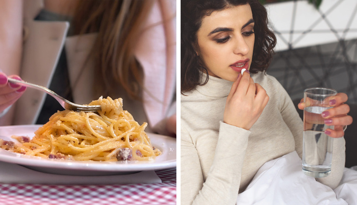 По-перше, перед прийомом ліків, якщо в інструкції не вказано інше, бажано поїсти. Ну або хоча б випити склянку кефіру. Це необхідно, щоб убезпечити шлунок. По-друге, знеболюючі краще брати зі склянкою теплої води або чашкою чаю, щоб вони потрапляли всередину хоча б частково розведеному вигляді.